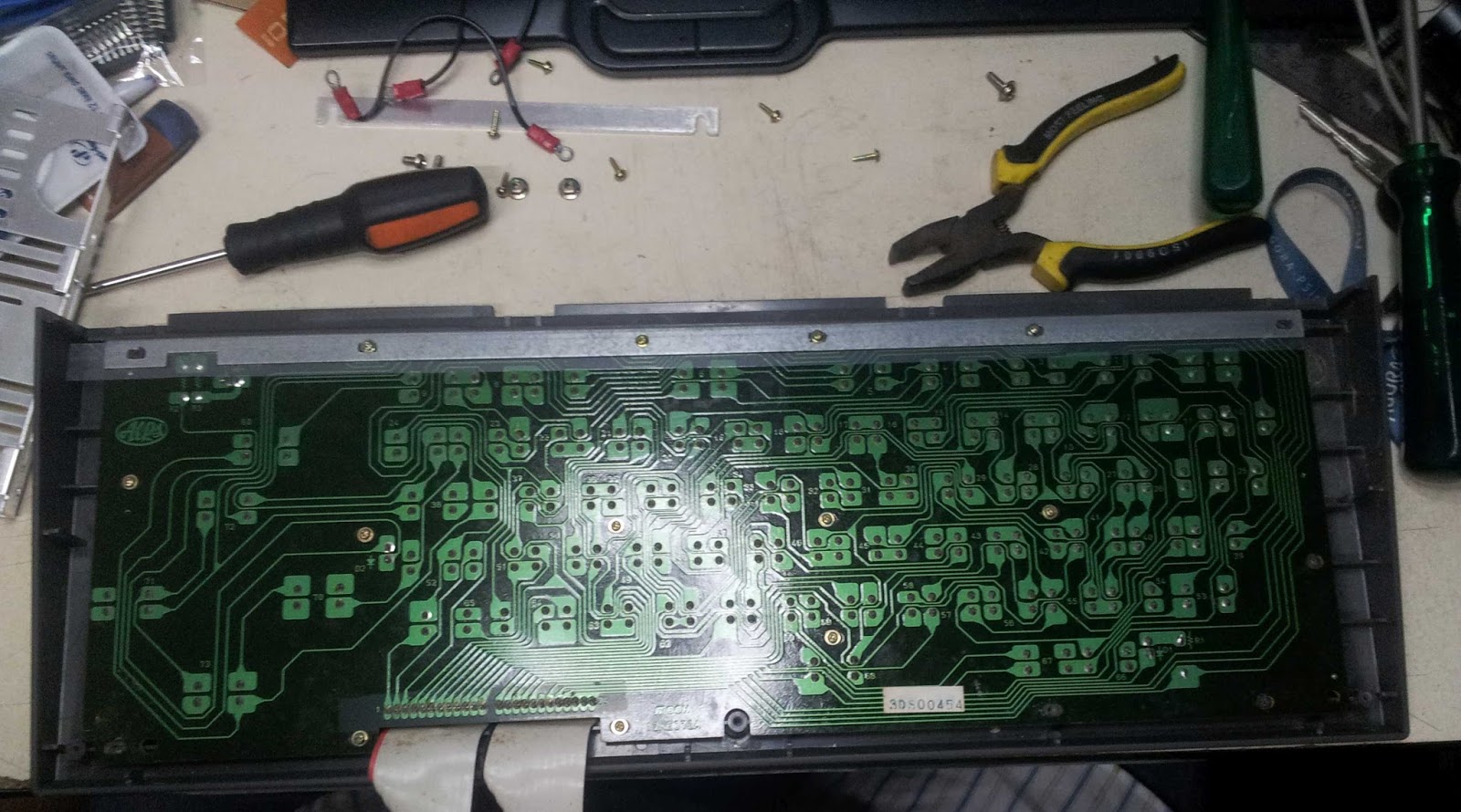 Os interruptores são os Alps "borrachinha" (não fazem "clec" como as chaves tacteis) facilmente encontraveis no mercado. Caso alguma tecla sua esteja falhando, não hesite em trocar o interruptor. Ou chute logo o pau da barraca e troque tudo. No AliExpress custa mixaria um saco de 100 peças.